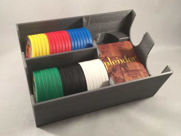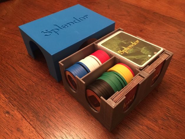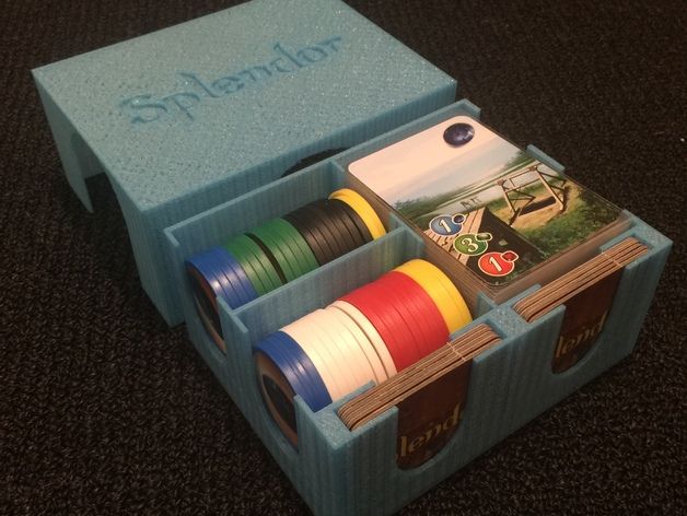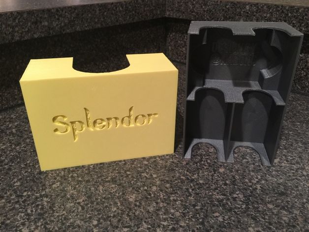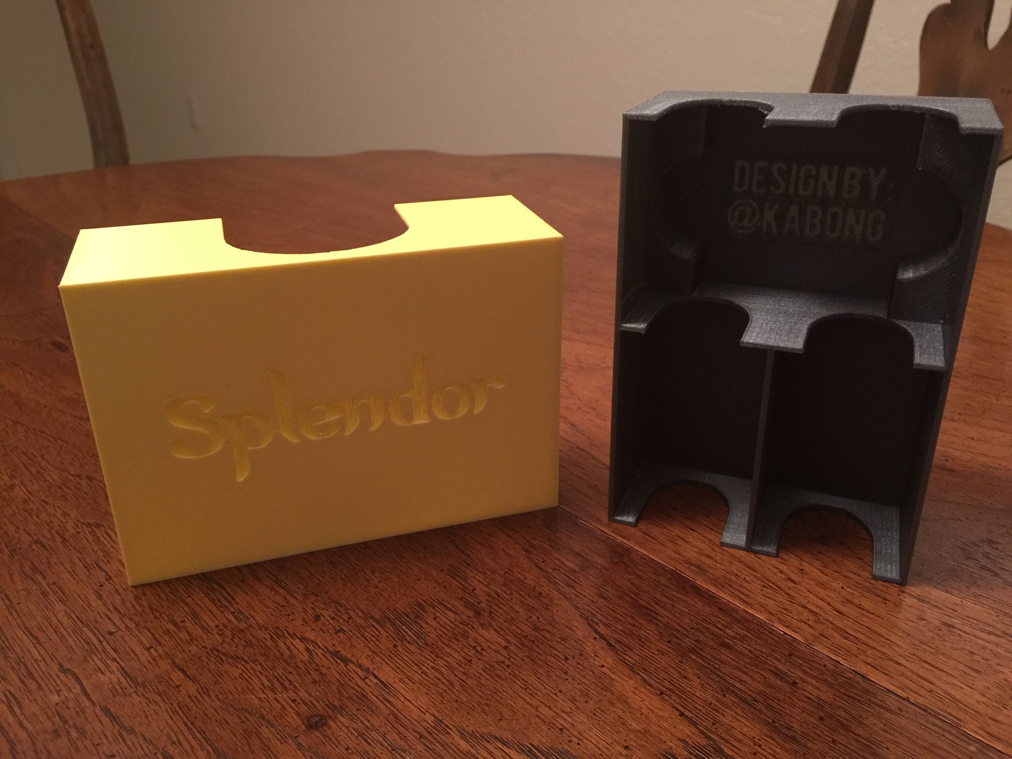 My favorite Splendor storage solution was created by Thingiverse user “Kabong.” His elegant panacea consists of a 3D printed case that securely houses all the components in a container that takes up about 3/5ths the space of the original box.
