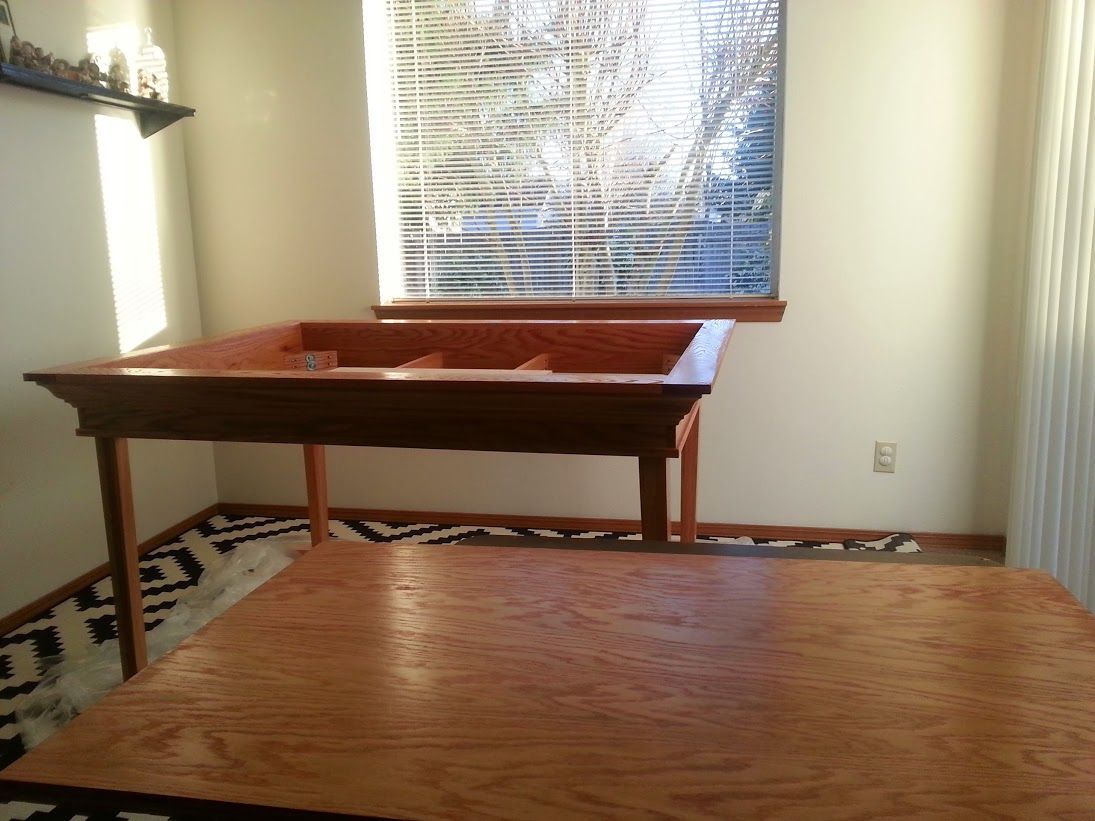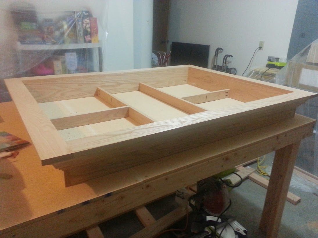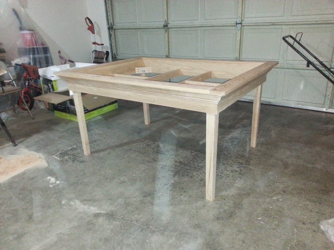 Alex Brown built this Red Oak Board Gaming table from scratch in his 2 car garage. In all it took 14 day for him to complete the table once the correct tools were purchased from his local Lowes hardware store.