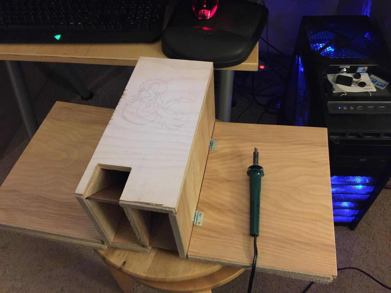 Imgur user earliodookie had always wanted a dungeon master screen with an integrated double sided dice tower for gaming, so he decided to build one himself. Using a single piece of plywood, a dremel, glue and some odds and ends he put together an impressive accessory. You can check out the entire process on Imgur, but these should wet your appetite. Also, don’t forget to check out his roommate’s custom built game table.