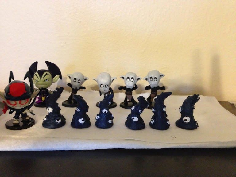 Gabe Garcia-Lavin a huge fan of the Krosmaster: Arena board game and spend some time creating these custom pieces for the Dark Heroes expansion. Using super sculpey clay for its ability to hold finer details he created summoned units for both Katar and Vampyro.