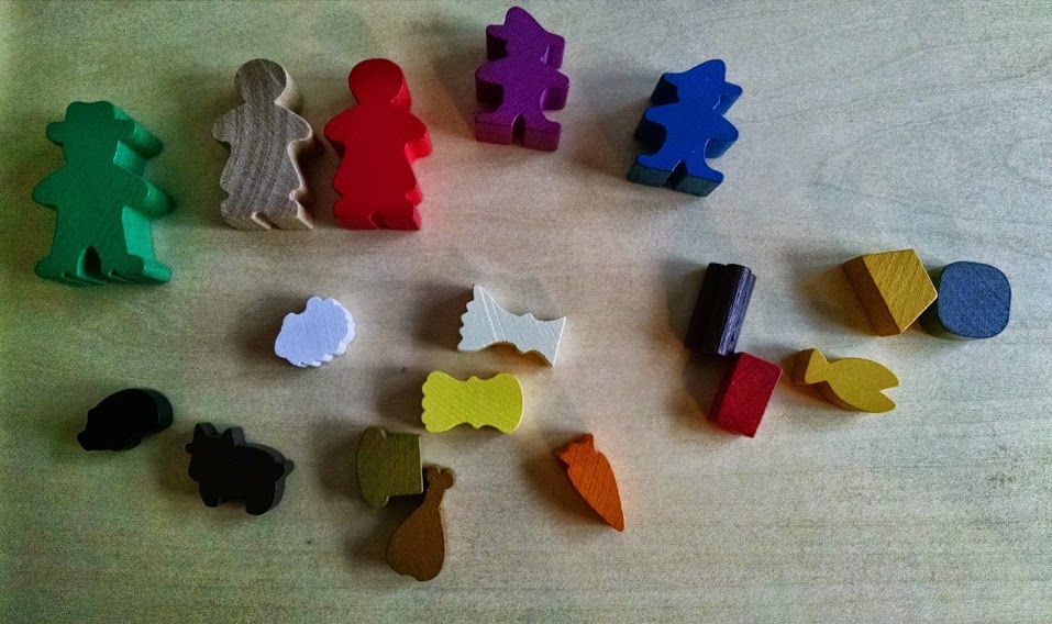 All told this set comes with 279 tokens. The tokens include 25 farmers (for Agricola) along with Sheep, Pigs, Cattle, Reed, Brick/Clay, Wood, Stone/Ore, Gold, Meat, Fish and Bread. To top it off it also has a handy storage box. With the diversity this set offers the retail price of $49.95 is a great investment for your board game enhancing future.