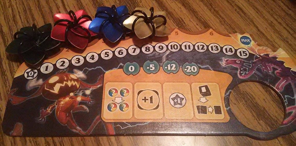 If a kick-ass insert wasn’t enough, Charles contacted another friend to create a surprise enhancement to include in the upgraded game. His friend used chain mail to make 80 “scalemail” flowers in four different colors to replace the OEM energy tokens.