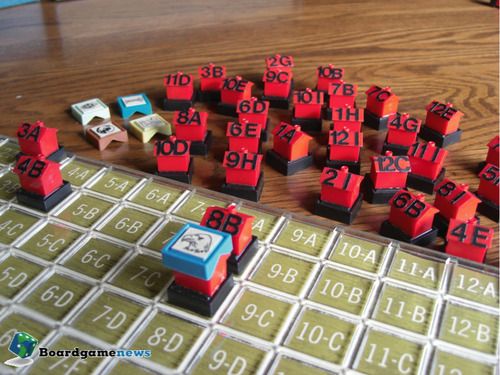 Now that I had the hotels I had to figure out how to put the grid references on them. I tried writing it in permanent marker, but the results looked horrible! I did some investigating and discovered that Letraset (what we all used before desktop publishing came along) made adhesive lettering in different sizes. I ordered some through the local art store and it worked a treat. I ended up with the rather pleasing hotels that you see in the pictures. Of course, this was before any 3-D reprint of the game by Avalon Hill, Wizards of the Coast, or Schmidt Spiele.
