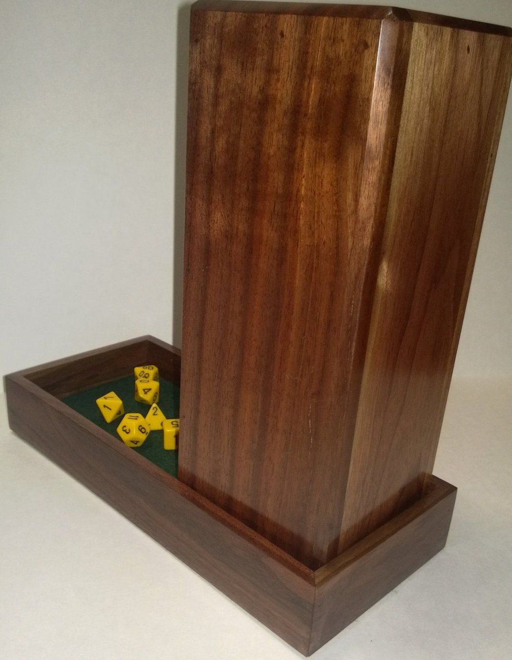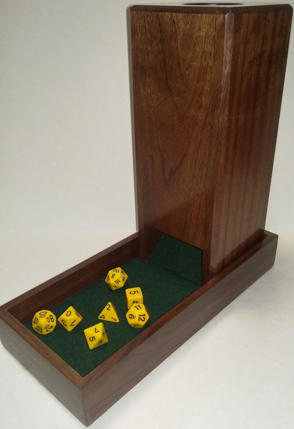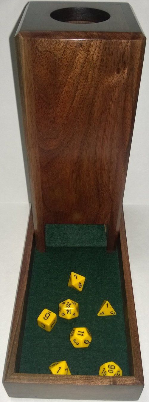 Are you tired of those pesky dice flying across the play surface knocking over game pieces or rolling onto the floor? If so, a dice tower is just the thing. Guaranteeing random rolls while corralling out of control dice. This handcrafted dice tower and tray are made from top quality woods. The tower and tray are finished with durable oil-based polyurethane consisting of 5-7 coats. Each tower tower is unique in its own way and is more than just a functional gaming accessory. When not in use it can be placed on a shelf, mantle, end table, or other display location like any other show or conversation piece. This tower and tray will serve your gaming needs and be treasured for years.